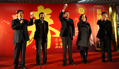 校黨委副書記陶一桃致新年祝辭。她首先代表學校黨政祝大家新春快樂!陶一桃說,大年三十中午,一餐溫馨、溫暖的團圓飯,已成為深圳大學的傳統。一年的歡樂、收獲和成就,都凝聚在這一餐團圓飯中;對來年的期盼和希望,也凝聚在一這餐團圓飯中。她祝愿大家在歡聲笑語中辭舊歲,擁抱一個更美好的未來。