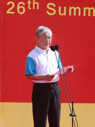校長章必功致辭。他表示,大運會火炬在水木清華采集火種,在北大未名湖畔點燃激情后,在深大的杜鵑山下、文山湖邊,傳遞著共同的愿望:和平、光明、青春、未來。“此刻,我們格外歡欣、格外鼓舞,內心充滿銳意進取的責任感與使命感。章必功激情滿懷地說:“感謝深圳,舉辦大運盛會,構建國際舞臺,讓五洲四海的大學生親密接觸,深大三萬師生正意氣風發,投身大運會,當好東道主。”