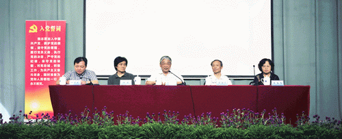 6月29日晚,師范學院科技樓一號廳舉行新黨員宣誓儀式暨“七一”表彰大會,慶祝中國共產黨建黨90周年。校長章必功參加了表彰大會。