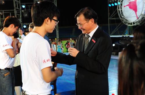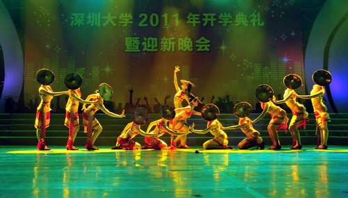 金秋九月,惠風和暢,荔園添新,歡聚一堂。9月14日晚,深圳大學田徑場燈光閃耀,掌聲雷動,我校2011年開學典禮暨迎新晚會在這里隆重舉行。伴著激揚的旋律,第二十六屆世界大學生夏季運動會開幕式“深大元素”再次精彩亮相,標兵、旗手、執旗手立于場內兩側揮舞雙臂,盡情鼓掌。90名開幕式“鮮花少女”在舞臺上踏著燈光,舞動 《鮮花禮贊》,謳歌生命,贊美青春,引起了新生們的陣陣喝彩。校領導江潭瑜、章必功、陶一桃、阮雙琛、邢鋒、李永華,中國工程院院士牛憨笨、中國科學院院士倪嘉纘,各學院、各機關單位、教研教輔單位的負責人,學生家長代表及2011級全體新生出席典禮。