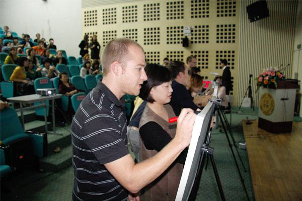11月28日上午,科技樓三號報告廳里氣氛熱烈,深圳大學國際交流學院留學生漢字讀寫比賽在這里緊張地進行著,近300名留學生參與了這次比賽。副校長阮雙琛、李永華,國際交流學院和校工會相關負責人來到現場來為外國同學們加油鼓勁。