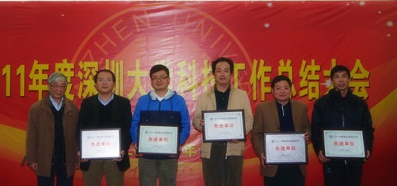 2011年,我校國家級高層次科技項目獲得重大突破,首獲2項973計劃項目;國家自然科學基金獲得78項,合同總經費達3562萬元,項目數量和經費均創歷史新高;重點實驗室建設又獲新突破,新增一個國家工程實驗室、兩個廣東省重點實驗室和三個深圳市重點實驗室;科技項目實到總經費達1.3553億元;學報(理工版)影響力持續增強。