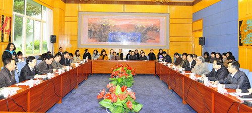 2月27日下午,中國文聯副主席、中國音協分黨組書記、著名作曲家徐沛東,中國音協分黨組成員、秘書長韓新安和深圳廣電集團總編輯陳君聰,副總編輯李樺、陳志榮等到我校商談金鐘音樂學院籌建事宜。我校校長章必功、副校長李鳳亮及學校各部門相關負責人出席了座談會,雙方就金鐘音樂學院籌建的相關問題進行了詳細討論。