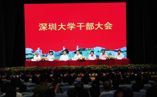 7月13日,我校召開干部大會。廣東省委組織部副部長張輝,廣東省委教育工委副書記、省教育廳黨組副書記景李虎,深圳市委常委、組織部長戴北方,省委組織部、市委組織部相關處室負責人,我校校領導、各教學、教輔單位班子成員和管理部門正、副職負責人,教授(正高級技術人員),市人大代表和政協委員,各民主黨派市委委員、基層組織負責人及僑聯、臺聯負責人共300余人出席大會。會議由校黨委書記江潭瑜主持。