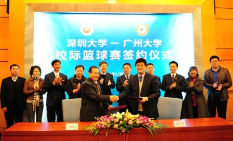 首場“深圳大學—廣州大學校際籃球賽”在我校2012綜合運動會閉幕式上舉行。今后,校際籃球賽每年將在深圳大學和廣州大學各進行一場,采用主客場制,參賽主、客隊各由兩校的在校大學生組成。