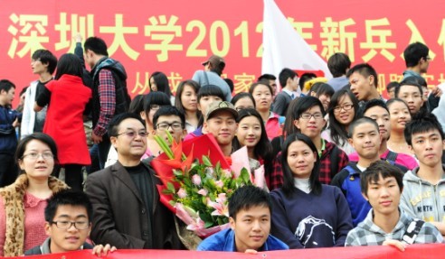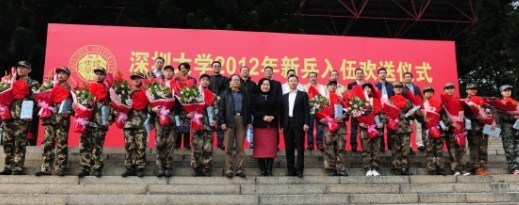 12月11日下午,深圳大學2012年新兵入伍歡送儀式在我校演匯中心前廣場舉行。校黨委副書記陶一桃、副校長李鳳亮,學生部、武裝部、各學院負責學生工作的領導,2012年入伍新兵、各學院歡送新兵學生代表、2012年退伍兵等參加了本次歡送儀式。武裝部主任謝海均主持儀式并介紹了我校今年的征兵情況。