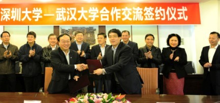 座談結束后,我校副校長阮雙琛與武大副校長謝紅星代表雙方簽署了“深圳大學—武漢大學合作交流協議”,并互贈紀念品。隨后,與會人員參觀了美麗的深大校園。