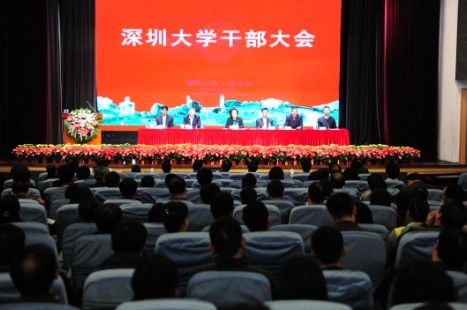 12月27日,我校在國(guó)際會(huì)議廳召開(kāi)干部大會(huì),宣布新一屆校領(lǐng)導(dǎo)班子和師范學(xué)院院長(zhǎng)任命。深圳市副市長(zhǎng)吳以環(huán),市委組織部副部長(zhǎng)賴育坤,市委教育工委副書(shū)記李永華,市委組織部干部三處處長(zhǎng)姚剛,我校全體校領(lǐng)導(dǎo),各教學(xué)、教輔單位班子所有成員和管理部門負(fù)責(zé)人,教授(正高級(jí)技術(shù)人員),市級(jí)以上人大代表和政協(xié)委員,各民主黨派基層組織負(fù)責(zé)人和無(wú)黨派人士代表300多人出席會(huì)議。會(huì)議由校黨委書(shū)記江潭瑜主持。