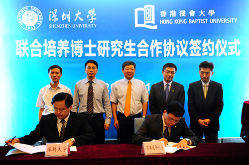 近年來,深圳大學(xué)在應(yīng)用數(shù)學(xué)、新聞與傳播、地理信息等專業(yè)與香港浸會大學(xué)在科研項(xiàng)目、研究生培養(yǎng)等方面進(jìn)行了富有成效的合作。雙方?jīng)Q定進(jìn)一步發(fā)揮優(yōu)勢,提升合作層次、擴(kuò)展合作領(lǐng)域,達(dá)成了聯(lián)合培養(yǎng)博士研究生協(xié)議和碩博連讀研究生培養(yǎng)協(xié)議。此次深圳大學(xué)與香港浸會大學(xué)聯(lián)合培養(yǎng)研究生項(xiàng)目將首批在地理信息、數(shù)學(xué)、新聞傳播學(xué)、生物學(xué)、化學(xué)5個雙向都具有優(yōu)勢和特色的學(xué)科領(lǐng)域進(jìn)行。為了保證聯(lián)合培養(yǎng)質(zhì)量,每個聯(lián)合培養(yǎng)的學(xué)科領(lǐng)域每年計(jì)劃招生原則上不超過2名。之后雙方將根據(jù)情況繼續(xù)拓展合作培養(yǎng)研究生的學(xué)科領(lǐng)域。聯(lián)合培養(yǎng)研究生實(shí)行雙導(dǎo)師制,學(xué)生由雙方組織遴選,培養(yǎng)過程和學(xué)位論文由雙方導(dǎo)師共同參與完成。實(shí)行雙校園制,聯(lián)合培養(yǎng)研究生將在浸會大學(xué)或深圳大學(xué)兩個校園完成不同階段的課程學(xué)習(xí)或課題研究任務(wù)。通過提供全額獎學(xué)金、科研津貼、補(bǔ)助生活費(fèi)或免收學(xué)費(fèi)等形式,為學(xué)生提供優(yōu)良待遇。學(xué)生可享用兩個學(xué)校的圖書館、實(shí)驗(yàn)室、互聯(lián)網(wǎng)、住宿等校園設(shè)施,參加兩學(xué)校舉辦的學(xué)術(shù)活動。質(zhì)量標(biāo)準(zhǔn)與國際接軌,相關(guān)專業(yè)的課程內(nèi)容設(shè)置、研究方法訓(xùn)練、學(xué)位論文評審答辯等均以浸會大學(xué)標(biāo)準(zhǔn)規(guī)程進(jìn)行,博士學(xué)位論文的撰寫、答辯均以英文進(jìn)行,質(zhì)量標(biāo)準(zhǔn)完全與國際接軌。聯(lián)合培養(yǎng)研究生在通過博士學(xué)位論文后將獲頒浸會大學(xué)博士學(xué)位證書。