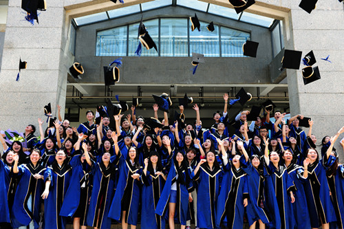 每場(chǎng)典禮開(kāi)始前半個(gè)小時(shí)左右,穿著學(xué)士服的畢業(yè)生齊齊到場(chǎng)。二樓的觀禮臺(tái)上滿是手捧鮮花的親友。一束束用精致的彩紙包裹好的玫瑰、百合和向日葵怒放著,一如在場(chǎng)所有人的心情。現(xiàn)場(chǎng)不僅有兩三歲的孩子來(lái)為自己的哥哥姐姐加油助威,就連七旬的老人家也特意趕來(lái)觀看自己孫輩的畢業(yè)典禮。一位來(lái)觀禮的母親說(shuō),“兒子是學(xué)建筑的,他苦讀五年,今天終于畢業(yè)了,我很驕傲,也很欣慰!”許多手機(jī)、相機(jī)紛紛對(duì)準(zhǔn)了各自在樓下的焦點(diǎn)。不少畢業(yè)生已帶著憧憬,選好了未來(lái)的路。剛考取香港大學(xué)研究生學(xué)位的鐘同學(xué)在儀式結(jié)束后興奮地對(duì)記者說(shuō),“這一刻真的很開(kāi)心!我還會(huì)繼續(xù)努力,開(kāi)始新的學(xué)習(xí)旅程!”