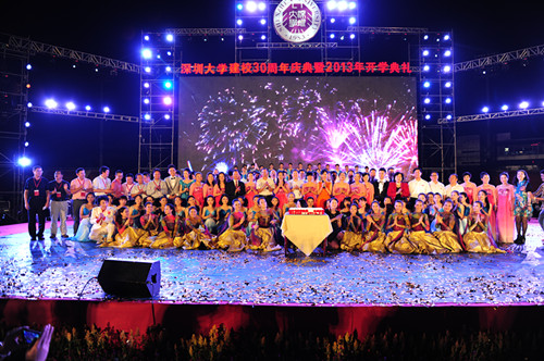 9月13日晚,星光璀璨,荔園歡騰。深圳大學田徑場洋溢著歡樂的笑聲和祝福聲。深圳大學建校30周年暨2013年開學典禮在此舉行。廣東省委常委、深圳市委書記王榮出席典禮并致辭,希望深圳大學以建校30周年為新起點,在教學、科研、管理、團隊建設、現代大學制度等方面不斷大膽探索,為辦成高水平、有特色、現代化一流大學而努力奮斗。