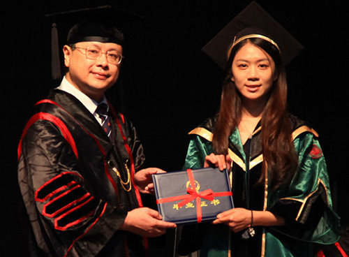 在悠揚的樂曲聲中,徐晨為參加畢業典禮的每位畢業生頒發了畢業證書并合影留念。