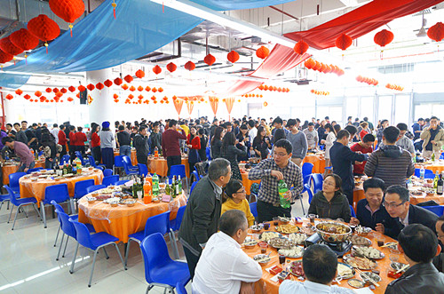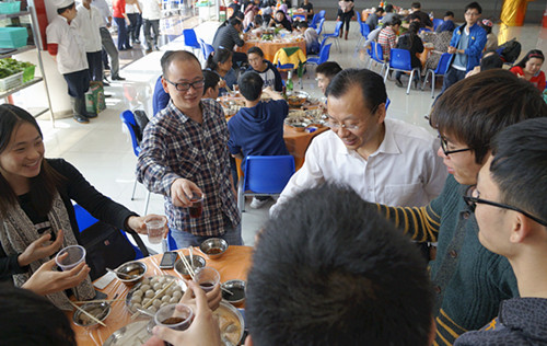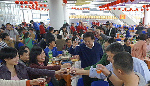 萬馬奔騰迎新歲。除夕的深大校園,處處洋溢著喜慶歡樂的氣氛。為了讓留校過年的師生也能感受家庭般溫暖的節日氛圍,學校舉辦了“年年有余?團年飯”活動。除夕中午,校領導李清泉、陶一桃、李鳳亮、黎軍、徐晨和有關部門、各學院負責人、老師,與留校師生及部分學生家長在深大南區飯堂歡聚一堂,共進除夕團圓飯,載歌載舞迎新春。團市委書記蔡穎、團市委副書記黃曉鵬等也應邀出席活動。活動由副校長李鳳亮主持。
