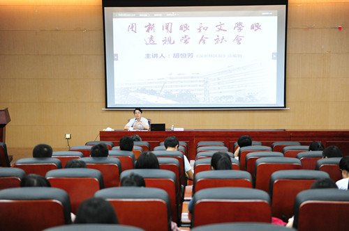 講座中,胡恒芳結(jié)合自己多年來的工作經(jīng)歷,圍繞四個(gè)方面展開講述:一、當(dāng)代社會(huì)是個(gè)什么樣的社會(huì)?他認(rèn)為,“信息社會(huì)”、“多元社會(huì)”、“開放社會(huì)”以及“法制社會(huì)”四個(gè)鮮明的概念構(gòu)成了當(dāng)今社會(huì)的“關(guān)鍵詞”;二、當(dāng)代青年學(xué)生與當(dāng)代社會(huì)的契合性。結(jié)合個(gè)人經(jīng)驗(yàn),他分別談及了當(dāng)代青年學(xué)生的優(yōu)勢(shì)與弱勢(shì),優(yōu)勢(shì)包括知識(shí)面廣、接受新事物快、反應(yīng)敏捷以及陽光向上、富有正能量,弱勢(shì)則包括責(zé)任感欠缺、心理承受能力較差、吃苦鉆研的精神不足以及學(xué)校教育與社會(huì)實(shí)踐脫節(jié),并從“注重經(jīng)歷”、“語言決定命運(yùn)”以及“關(guān)鍵在于做人”三個(gè)方面提出了對(duì)當(dāng)代青年學(xué)生適應(yīng)社會(huì)的精辟見解;三、當(dāng)代社會(huì)對(duì)新聞學(xué)與文學(xué)的期待,胡恒芳主要談及兩點(diǎn),即期待新聞性與文學(xué)性的融合,期待運(yùn)用獨(dú)具思想性的“新聞眼”與“文學(xué)眼”去看待和透視當(dāng)代社會(huì);四、新媒體時(shí)代下,新聞與文學(xué)的出路。他說,盡管新媒體時(shí)代,人們對(duì)新媒體的使用熱情高漲,傳統(tǒng)媒體尤其是紙媒受到很大的沖擊,但紙媒并不會(huì)“一夜死掉”,并通過對(duì)日本、美國和英國讀報(bào)、看雜志和看書的豐富實(shí)例,提出在未來看報(bào)反而成為人們一種理性的回歸。最后,胡恒芳祝愿荔園學(xué)子在未來的新聞、文學(xué)事業(yè)上越走越好。
