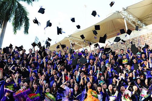 據教務部主任王暉介紹,2014年我校共有6280名應屆本科畢業生將要離開學校走上工作崗位,或開始新的學習生活。畢業生分布在全校64個專業。截止6月24日統計,共有5163名本科生按照教學計劃要求完成專業學習,按期取得畢業證書,有5162名本科生符合學校學士學位授予條例的有關規定,經學校學位評定委員會審議批準獲得學士學位,約占2014屆全部應屆本科畢業生的82%。其中,有17名外國留學生分別完成了漢語言文學、國際經濟與貿易專業的教學計劃要求,取得畢業證書。