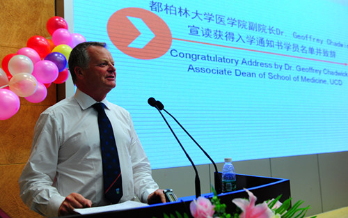 Geoffrey Chadwick祝賀同學們順利完成學業,他熱烈歡迎其中16位被都柏林大學—深圳大學臨床醫學碩士班錄取的學生早日到都柏林大學學習,并感謝深圳市政府、深圳大學對兩校合作的大力支持。