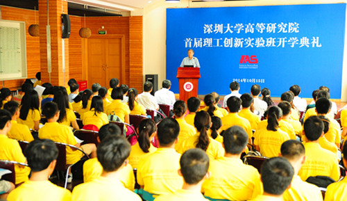 韓志超在開學(xué)典禮上致辭。他說,在全中國經(jīng)濟(jì)升級(jí)和教育創(chuàng)新的背景下,深大開創(chuàng)了高等研究院“理工創(chuàng)新實(shí)驗(yàn)班”,為同學(xué)們的學(xué)習(xí)提供了良好的環(huán)境、齊全的設(shè)備和最好的老師,提供了一個(gè)真正可以追求學(xué)術(shù)的地方。希望在四年以后,可以看到優(yōu)秀中最優(yōu)秀的63位學(xué)士;六年之后能夠看到創(chuàng)新自主的63位碩士;碩士畢業(yè)后,同學(xué)們已經(jīng)具備迎接任何挑戰(zhàn)的素質(zhì)。