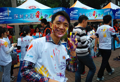校黨委書記江潭瑜宣布首屆深圳大學彩色跑開始,并與李清泉校長帶領各部室、各學院負責人一同加入學生彩色跑行列。十二月的荔園,因為彩色跑的流光溢彩而增添了一道靚麗的風景線。