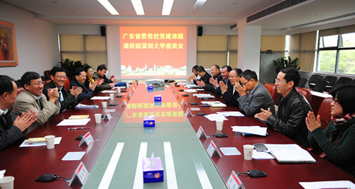 江潭瑜介紹了我校基本情況,并重點介紹了學校在黨建工作方面的特色和作法。他說,深圳大學重視加強基層黨組織建設,實行分類指導原則,對教工黨組織,緊緊圍繞教學科研,教書育人等工作;學生黨組織圍繞政治素質、科學文化素質和身心健康素質協調發展進行;機關后勤黨組織圍繞精制管理精致服務,著力提高服務能力和辦事效率等方面展開。針對高校黨員知識分子密集、獨立思考意識和學習能力較強、獲取信息渠道比較廣泛、思想活躍等特點,學校改進和創新黨支部工作和活動方式,把支部工作與教學科研、學生成長、校園文化、學生社團活動等緊密結合起來。在“控制總量、優化結構、提高質量、發揮作用”的新形勢、總要求下,扎實規范地做好黨員發展和教育工作;把入黨積極分子培養教育作為學生黨員發展工作的著力點,健全完善學校黨校和學院分層培養、分步銜接的培養體系,保證黨員發展質量,突出嚴格、規范;以制度建設為保障,建立學生黨員社會服務長效機制,學生黨員每年參加40小時志愿服務作為評選優秀的條件之一,不斷健全志愿服務管理與激勵機制;保障基層黨建工作的經費投入,每年不低于70萬的專項經費用于黨建工作,使用上規定了“公開透明、專款專用、講究實效”的原則。把加強思想意識形態工作擺到突出位置,不斷完善學生管理機制和措施,密切關注學生思想動態,深入細致地做好管理服務和教育引導。江潭瑜說,對于黨建工作還存在的一些不足,在下一步工作中,學校將抓根本,進一步推進思想理論建設;抓隊伍,加大對基層黨務工作者的培訓力度;抓服務,關心并解決師生合理訴求;抓穩定,注重意識形態教育,維護校園安全和穩定;抓落實,強化責任意識。