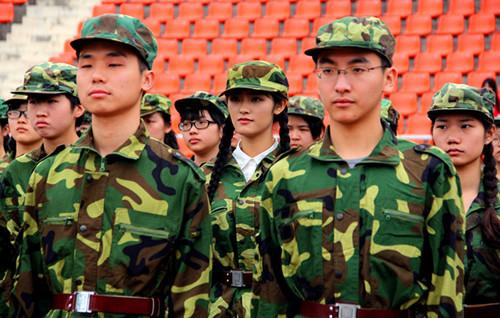 校園內點點綠彩,同學們英姿颯爽。上午8點30分,參訓新生準時到達集合場地,以較高效率完成進行預編隊訓練。9點30分,動員大會召開,軍訓一團團長王紅飛、政委李衛英,軍訓二團團長聶衛、政委張革華及各團副政委、營、連長、連隊指導員老師、教官、新生出席現場。各團長、政委做動員,宣讀《2014年軍訓工作管理規定》,對各項軍訓事宜作出具體部署,勉勵新生樹立國防意識、集體主義意識,聽從指揮、服從命令,希望同學們嚴守紀律,學有所成。新生代表及教官代表表決心,表示將以飽滿熱情投入這場“人生的戰役”,恪守本職,認真完成軍訓任務。