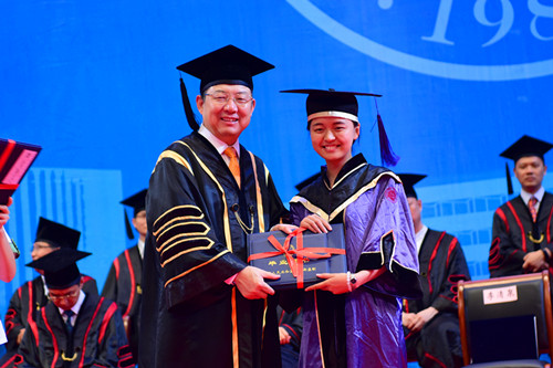 李清泉為博士學(xué)位、碩士學(xué)位獲得者一一頒授證書(shū)。