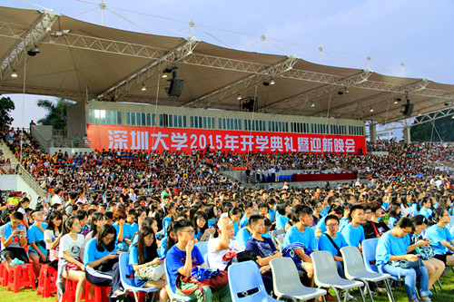9月16日晚上,深圳大學(xué)2015年新生開(kāi)學(xué)典禮在我校體育場(chǎng)舉行。校領(lǐng)導(dǎo)李清泉、張基宏、陶一桃、阮雙琛、李鳳亮、徐晨,中國(guó)科學(xué)院院士、深圳大學(xué)生命與海洋科學(xué)學(xué)院名譽(yù)院長(zhǎng)倪嘉纘,深圳市大疆創(chuàng)新科技有限公司總經(jīng)理汪滔,學(xué)校各部門(mén)、各學(xué)院、教研教輔單位負(fù)責(zé)人,教師代表、2015級(jí)全體本科生及部分家長(zhǎng)代表參加開(kāi)學(xué)典禮。典禮由副校長(zhǎng)李鳳亮主持。