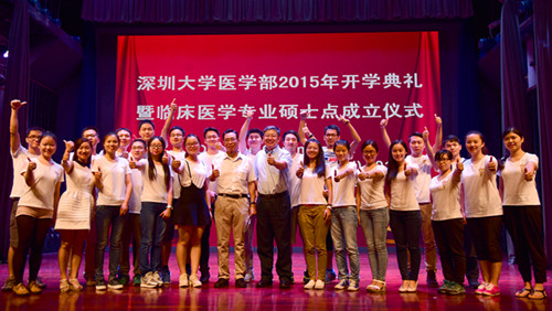 9月22日下午,我校醫學部2015年開學典禮暨臨床醫學專業碩士點成立儀式在國際會議廳舉行。中國工程院院士、醫學院名譽院長鐘南山,市衛生與計劃委員會副主任許四虎,市公立醫院管理中心副主任鄭國彪,我校校長李清泉,醫學院部、科技部、研究生院相關負責人,各兄弟單位的領導、專家以及附屬醫院、醫學院教師代表,捐贈獎學金企業代表,部分學生家長和醫學院2015級全體新生參加了典禮。
