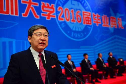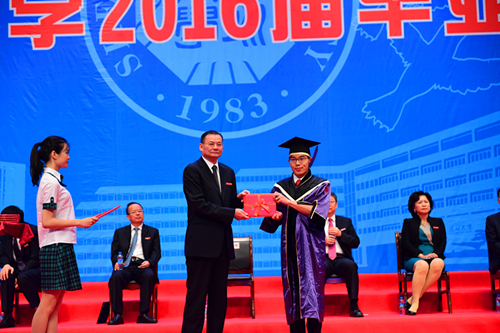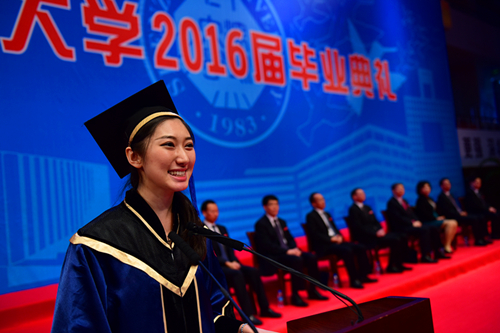 教務部主任王暉宣讀了《深圳大學二〇一六屆全日制本科畢業生情況》。2016年,我校共有5168名本科生按照教學計劃要求完成專業學習,按期取得畢業證書,約占2016屆全部應屆本科畢業生的79.59%。該批本科生有5167名獲得學士學位。其中,有100名畢業生獲得推免生資格,931名同學被國內外高校和科研機構錄取為碩士研究生,占本屆畢業生人數的15.4%,包括清華大學、北京大學、復旦大學、浙江大學、武漢大學、中山大學、中國科學院、芝加哥大學、早稻田大學、倫敦大學、悉尼大學等。