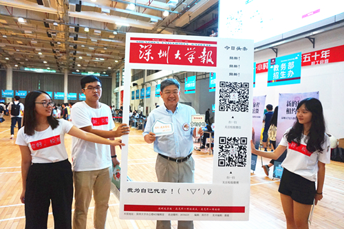 在各大媒體的專場采訪上,李清泉回答了有關獎學金、食堂、生源等問題。他表示深大獎學金豐厚,今年深大將為新生發(fā)放新生獎學金逾800萬元,一名優(yōu)秀的本科生在校四年拿到的獎學金最多可累計達到10萬。而食堂也一直以菜色全、價格低等優(yōu)勢受到廣大學生歡迎。他還透露,今年年底西麗校區(qū)的學生宿舍將會建設完畢,投入使用。談到生源問題,他表示深大越來越受高分段考生的青睞,生源質(zhì)量不斷提高。據(jù)悉,廣東省理科排位為259的深圳學子林俊峰同學,以理科662分超一本線154分的優(yōu)異成績?nèi)胱x深大經(jīng)濟學院,并獲得華強新生特等獎學金。今年獲華強新生特等獎學金的新生有79人,比去年增加了55人,另有422人獲華強新生獎學金。他特別強調(diào)深圳大學運動訓練專業(yè)生源質(zhì)量優(yōu)良,其中國家級運動健將2名,運動健將11名,一級(含)以上運動員占我校該專業(yè)錄取人數(shù)的64%。該專業(yè)今年錄取的高爾夫球項目新生李昊桐同學,代表中國出征里約,開出了中國高爾夫奧運的第一桿。