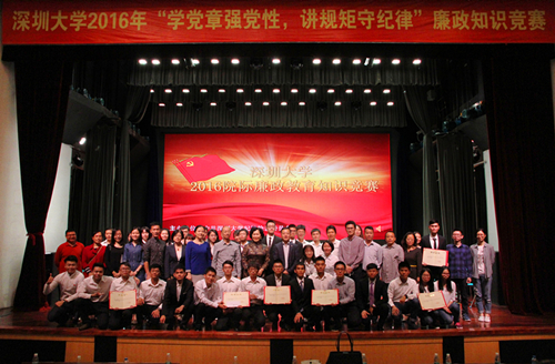 11月4日晚,我校在國際會議廳舉辦了深圳大學2016年“學黨章強黨性,講規矩守紀律”廉政知識競賽。此次活動由紀律檢查委員會主辦,紀委辦、黨委宣傳部以及法學院黨委承辦,法學院黨支部工作委員會協辦。我校黨委副書記、紀委書記陶一桃出席活動。