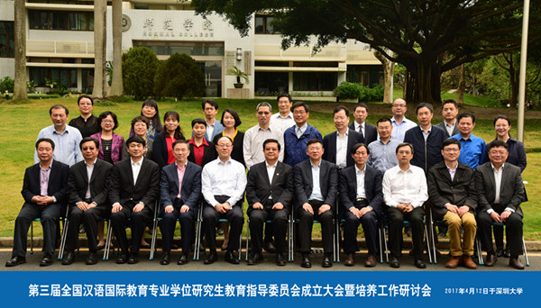4月12日,第三屆全國漢語國際教育專業學位研究生教育指導委員會成立大會暨培養工作研討會在我校國際會議廳舉行。原教育部副部長、中國教育國際交流協會會長、全國漢語國際教育專業學位教指委主任委員劉利民,我校黨委書記劉洪一,國務院學位辦研究生培養處處長唐繼衛,孔子學院總部/國家漢辦黨委書記馬箭飛,以及第三屆全國漢語國際教育專業學位研究生教指委27位委員出席會議。