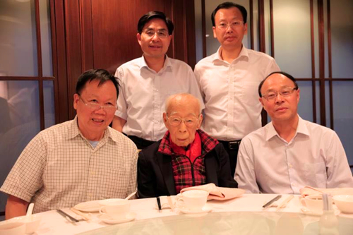 劉洪一一行首先拜會了著名國學大師饒宗頤先生,并向饒先生頒發了深圳大學饒宗頤文化研究院名譽院長聘書。饒宗頤先生已逾百歲高齡,是我國當代著名的歷史學家、考古學家、文學家、經學家、教育家和書畫家。饒宗頤先生與深圳大學具有深厚的學術淵源。1984年9月,饒先生應邀參加深圳大學中文系、國學所的成立會議,擔任國學所顧問,并為學生授課。1995年6月,受聘深圳大學名譽教授。2005年3月,擔任比較文學與比較文化研究所名譽所長、顧問。2011年,饒先生為深圳大學跨學科學術團隊策劃的《鵬城萬里圖》題寫卷首。2016年12月,我校成立深圳大學饒宗頤文化研究院,饒先生表示全力支持研究院的發展,并應深圳大學邀請欣然擔任研究院名譽院長和學術顧問。