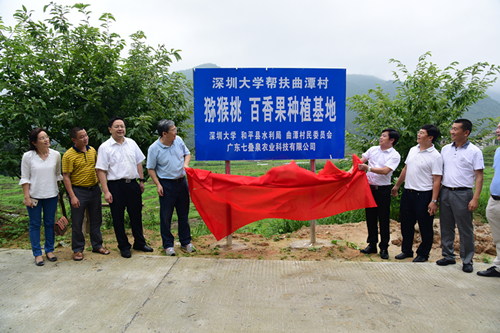 緊接著,李清泉一行前往深圳大學幫扶曲譚村獼猴桃、百香果種植基地進行揭牌儀式。深圳大學幫扶曲譚村獼猴桃、百香果種植基地是深大結合當地生產條件,提供技術方法專門指導對曲潭村實施精準扶貧、精準脫貧的一項重大措施,有利于提高村民收入、改善村民生活條件、提升村民生活水平、最終實現全部脫貧,打贏脫貧攻堅戰。