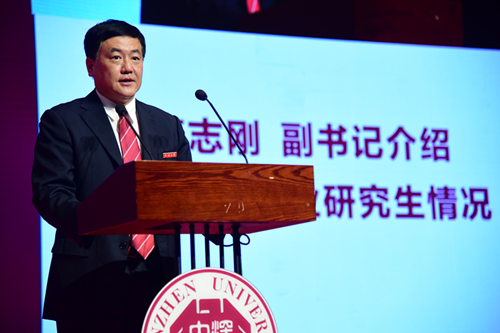 黨委副書記范志剛介紹了深圳大學(xué)2017屆畢業(yè)研究生情況。今年我校共有1523名研究生順利畢業(yè),這些畢業(yè)生分布在哲學(xué)、經(jīng)濟(jì)學(xué)、法學(xué)、教育學(xué)、文學(xué)、理學(xué)、工學(xué)、管理學(xué)、藝術(shù)學(xué)等9個學(xué)科。經(jīng)學(xué)位評定委員會審議通過,有18位同學(xué)順利完成學(xué)業(yè),通過論文答辯,獲得博士學(xué)位;有1505名碩士研究生完成論文答辯并獲得碩士學(xué)位,其中學(xué)術(shù)型碩士研究生869人,專業(yè)學(xué)位碩士研究生636人。