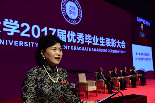 黨委副書記陶一桃宣讀了深圳大學(xué)關(guān)于表彰2017屆優(yōu)秀畢業(yè)生的決定。深大[2017]118號文件決定授予劉申等137名2017屆畢業(yè)研究生“優(yōu)秀畢業(yè)研究生”榮譽(yù)稱號,并予表彰;深大[2017]124號文件決定授予汪秀等330名本科畢業(yè)生2017屆“優(yōu)秀畢業(yè)生”榮譽(yù)稱號,并予以表彰;深大[2017]43號文件決定授予蔡健華等59名同學(xué)優(yōu)秀畢業(yè)生稱號。