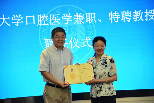 深圳大學聘周學東為口腔醫學特聘教授,聘張強等人為口腔醫學兼職教授,李清泉校長為特聘教授、兼職教授頒發聘書。