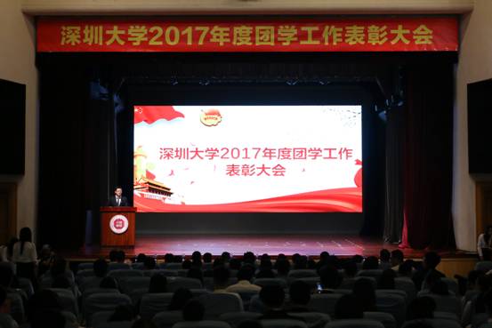 5月24日下午,我校在國際會議廳召開2017年度團學工作表彰大會。校黨委副書記、紀委書記陶一桃,校團委、教務部、學生部、黨委研工部、西麗校區管委會等職能部門負責人,關心團學工作的“青年之友”,各學院分管學生工作的負責人、各學院團委、團支部負責人及團員學生代表一起參加了表彰大會。