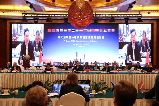 5月28日上午,第六屆中國—中東歐教育政策對話在深圳舉行。中國教育部副部長田學軍,廣東省副省長黃寧生,中國—中東歐國家合作事務特別代表霍玉珍大使,深圳市副市長高自民,斯洛文尼亞、保加利亞、匈牙利、塞爾維亞、愛沙尼亞、捷克、克羅地亞、羅馬尼亞、波黑、斯洛伐克、拉脫維亞等中東歐16國教育部、科技部和體育部部長、副部長、國務秘書、駐華大使,清華大學、北京航空航天大學等數十所中外高校相關負責人以及共同出席了會議。我校黨委副書記陶一桃參加相關交流活動,副校長王暉參加會議。
