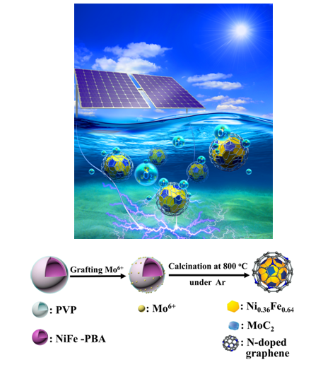 化學與環境工程學院何傳新課題組在電催化水分解方面取得重要進展,研究成果以“Crafting MoC2-doped Bimetallic Alloy Nanoparticles Encapsulated within N-doped Graphene as Roust Bifunctional Electrocatalysts for Overall Water Splitting”為題發表在《Nano Energy》(JCR一區,影響因子12.343)上。該研究通過聚乙烯吡咯烷酮與二元NiFe普魯士藍復合,一步法制備出石墨烯封裝的合金納米顆粒NG-NiFe@ MoC2,將其應用于電催化析氫或析氧反應中,表現出優異的活性和穩定性。此外,NG-NiFe@ MoC2納米雜化材料可以同時作為陽極和陰極電催化劑用于完全水分解,在較低的電壓下(1.53 V)實現10mA cm-2的電流密度和較好的耐久性(10 h),優于貴金屬Pt/C//RuO2所構建的電解池,有望應用于替代貴金屬催化劑以實現高效且低成本的完全水分解。課題組胡琪博士是論文的第一作者,深圳大學何傳新副教授和佐治亞理工學院的林志群教授為論文的共同通訊作者,深圳大學為第一完成單位和通訊單位。
