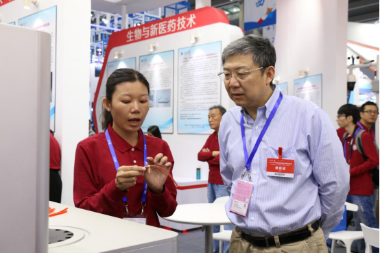 李清泉饒有興致地觀看了排線與排線連接器殼體自動接插機,全自動樣品轉移系統等項目成果的具體操作演示,并詢問該成果的創新點、成品檢測和應用成效。現場他還試喝了改善代謝功能飲品,體驗了含干細胞因子的可降解吸收修復面膜等項目成果。