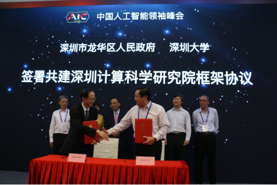 陳建民、徐晨分別代表龍華區人民政府和深圳大學簽署合作共建深圳計算科學研究院框架協議。根據協議,研究院將落戶龍華。深圳大學將為研究院提供全方位的支持,包括必要的建設和運行經費、辦公空間、研究生名額,并鼓勵研究院與龍華區的合作。龍華區人民政府將在政策法規規定的范圍內,向研究院提供場地裝修費扶持和一定期限的房租扶持;支持研究院爭取國家、省、市的政策資金支持,在政策法規規定的范圍內給予相應資金配套支持;支持研究院人才引進,在政策法規規定的范圍內,對研究院職工的住(租)房提供相應的保障舉措,并對引進的高層次人才提供人才項目方面的支持。