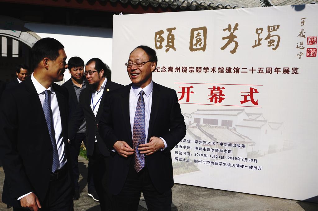 11月24日,我校黨委書記劉洪一、黨委副書記范志剛出席在潮州市饒宗頤學術館舉行的《頤園芳躅——紀念潮州饒宗頤學術館建館二十五周年》展覽開幕式。香港潮屬社團總會創會會長陳偉南,香港潮屬社團總會主席陳幼南,香港潮屬社團總會名譽會長黃書銳;潮州市委書記、市人大常委會主任劉小濤,潮州市委副書記、市長殷昭舉,韓山師范學院黨委副書記林光英,饒宗頤學術館基金會聯席主席謝錦鵬等出席開幕式。