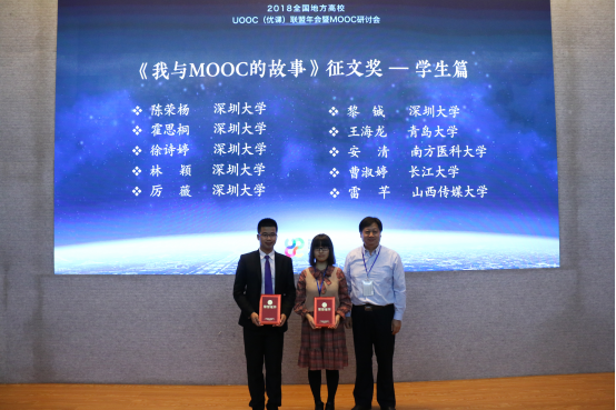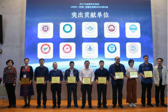 與會領(lǐng)導(dǎo)與嘉賓為UOOC聯(lián)盟突出貢獻(xiàn)單位、品牌MOOC課程、《我與MOOC的故事》征文獎獲得者、優(yōu)秀制作公司頒獎。