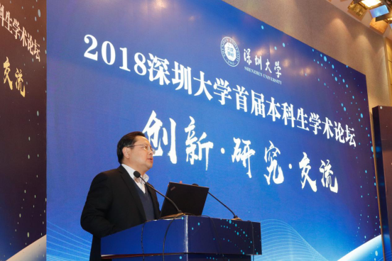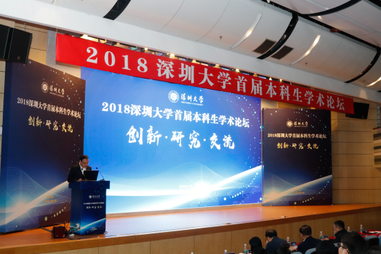 12月14日,深圳大學首屆本科生學術論壇在科技樓舉行。上午,本科生學術論壇理工類分論壇和社科類分論壇同時舉行,各有10名同學展示了他們的學術風采。副校長徐晨,教務部、團委、學生部、高等研究院等部門相關負責人以及相關學院師生參加了當天下午的主論壇。主論壇由教務部主任袁磊主持。