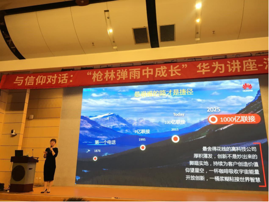 林睿琦為觀眾們帶來精彩的演講。她從一位普通華為人的視角向大家分享華為的故事,她解讀了華為的“狼性”精神——“狼性”:敏銳的嗅覺、市場洞察力、行業(yè)的前瞻性及超強(qiáng)的團(tuán)隊(duì)精神。林睿琦展示了一張人們在剛果河上捕魚的圖片,并解讀這張圖片的背景以講述華為成長邏輯的第一點(diǎn):“智慧源于定力”。華為摒棄外界誘惑,老老實(shí)實(shí)、厚積薄發(fā),只做了一件事:30年連接了全球的30億人。華為立志“把數(shù)字世界帶入每個(gè)人、每個(gè)家庭、每個(gè)組織,構(gòu)建萬物互聯(lián)的智能世界”,做到從領(lǐng)先者變?yōu)轭I(lǐng)導(dǎo)者。