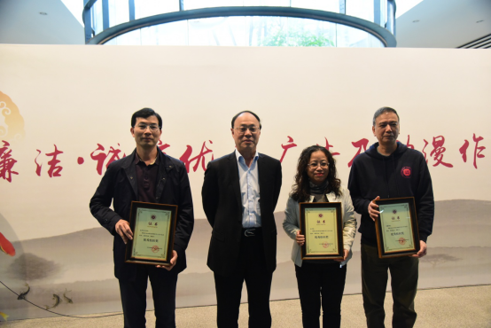 廉潔?誠信優(yōu)秀廣告及動漫作品展覽啟動儀式上,劉洪一為法學院、傳播學院、藝術設計學院頒發(fā)優(yōu)秀組織獎,劉鵬、劉洪一、范志剛、盧成燕為廉政?誠信主題公益廣告及動漫作品大賽的獲獎學生代表進行頒獎。啟動儀式后,領導、嘉賓及師生參觀了本次展覽作品。