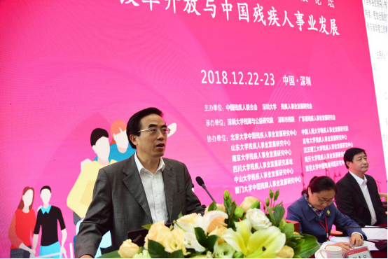 12月22日-23日,由中國殘疾人聯合會、深圳大學、殘疾人事業發展研究會共同主辦的第十二屆中國殘疾人事業發展論壇在我校西麗校區舉行。中國殘聯副主席、殘疾人事業發展研究會會長程凱,深圳市委常委、統戰部部長林潔,深圳大學副校長李永華,中國工程院院士、深圳市建筑設計研究總院總建筑師、深圳大學特聘教授孟建民,民政部社會福利與慈善事業促進司副司長徐建中等出席了22日上午的論壇開幕式并致辭。本屆論壇以 “改革開放與殘疾人事業發展”為主題,圍繞習近平總書記在慶祝改革開放40周年大會上的講話精神,深入總結改革開放以來殘疾人事業發展的成就和經驗,共同探討新時代中國殘疾人事業發展。來自北京大學、中國人民大學、浙江大學、南開大學、中山大學等50多所高校、研究機構的專家學者齊聚深圳大學,以及全國各地的殘疾人和殘疾人工作者代表共約260人參與研討。