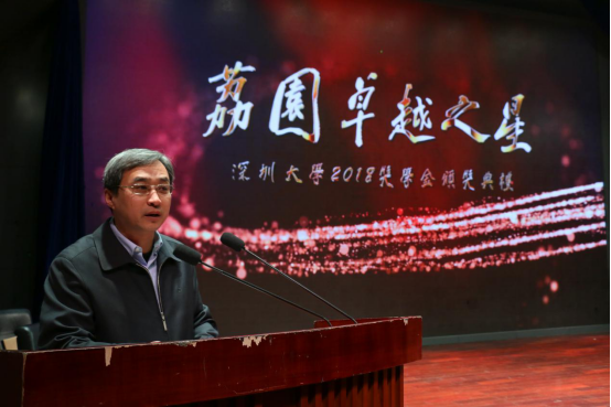 典禮開始,全場(chǎng)齊唱國(guó)歌。學(xué)生部副主任陳云飛介紹了深圳大學(xué)獎(jiǎng)學(xué)金評(píng)定概況。今年是執(zhí)行新獎(jiǎng)學(xué)金評(píng)定辦法的第二年,按照新的評(píng)定辦法,除了獎(jiǎng)勵(lì)在某方面表現(xiàn)突出的單項(xiàng)獎(jiǎng),還增設(shè)了綜合獎(jiǎng)——“荔園之星”和“荔園卓越之星”,重點(diǎn)以學(xué)業(yè)成績(jī)、創(chuàng)新創(chuàng)業(yè)成果、公共服務(wù)情況三個(gè)方面作為核心評(píng)價(jià)指標(biāo),突出了人才培養(yǎng)的綜合導(dǎo)向。2018年獎(jiǎng)學(xué)金評(píng)定工作的參與度高,今年我校有10462人網(wǎng)上申請(qǐng)了獎(jiǎng)學(xué)金;獎(jiǎng)學(xué)金的獲獎(jiǎng)面廣,5841人獲得學(xué)校各類優(yōu)等生榮譽(yù),125人獲得各類社會(huì)獎(jiǎng)學(xué)金,先進(jìn)班集體165個(gè),獲獎(jiǎng)比例達(dá)到28%;獎(jiǎng)學(xué)金獎(jiǎng)勵(lì)力度大,今年發(fā)放各類獎(jiǎng)學(xué)金共計(jì)1461.652萬元。他表示,2018年我校在人才培養(yǎng)上取得了里程碑式的成績(jī),本科教育質(zhì)量穩(wěn)步提升,文理科錄取分?jǐn)?shù)穩(wěn)居廣東高校第四名。