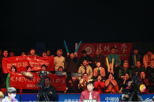 總決賽第二日,由深圳大學校領導、贊助商及合作單位嘉賓、深大賽區幸運球迷、俱樂部及深大體育公司的全體工作人員組成的深大加油團,熱情不改,繼續在現場為深大搖旗吶喊。作為首次踏入決賽的年輕隊伍,深大乒超雖敗猶榮。歷經三個賽季的征程,從2016年初涉賽場斬獲第五,再到17-18賽季的并列第三,本賽季深大乒超再次刷新歷史最佳戰績,斬獲第二名。