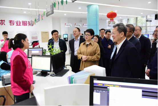 劉洪一、范志剛陪同任華一行先后參觀了二維材料光電科技國際聯合實驗室、大數據系統計算技術國家工程實驗室和學生事務中心。一行人先后聽取了相關負責人對實驗室的師資隊伍、部門建設、運行框架、研究領域,以及學生事務中心的運行機制、人員構成等基本情況的匯報。參觀后,一行人前往辦公樓進行座談交流。